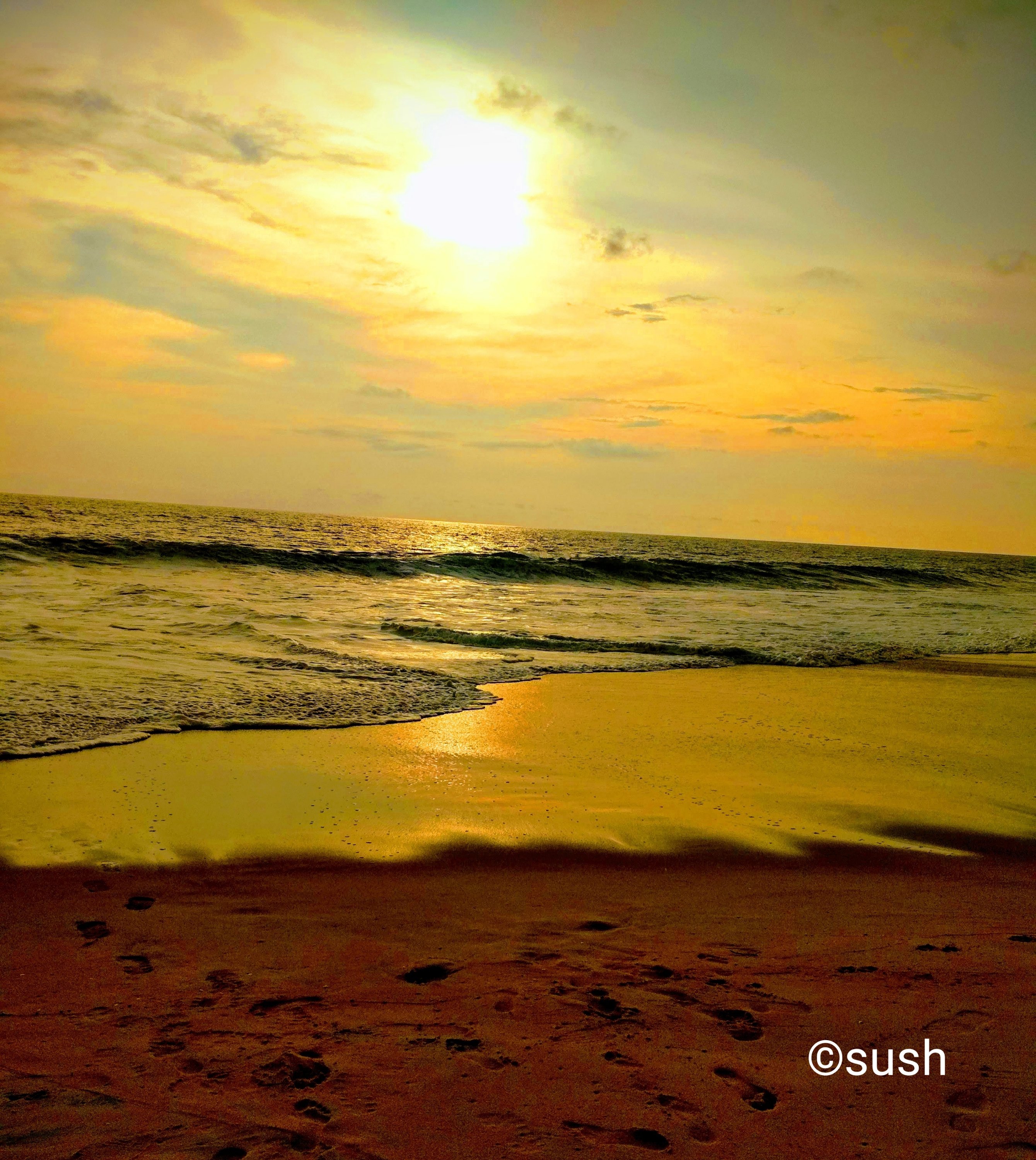 A beautiful yellow sunshine through the clouds, while you look at the distance… walking on the beach skirting the shoring waves as they curl away from underneath my feet, priceless!